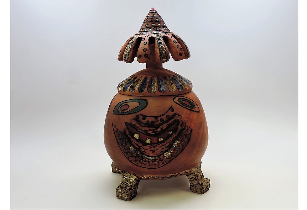 I have been turning wood for over a quarter century. All of my work spends some time on the lathe but most of the carving coloring, burning and decorating is done by hand off the lathe. I am a member of the Long Island Wood Turners Association and the AAW. I served as the secretary of the LIWA for 10 years and President for 6 years. I currently serve as Chairman of the Board. I studied and have been influenced by such fine artists as Binh Pho, Jacques Vessery and most recently Alain Mailland. My work has been featured on Fios One TV, “The Wood Speaks” and “Woodturning.” My art is sold in galleries and my pieces are in the collections of both Rock Hall Museum and the Grist Mill Museum on Long Island. I frequently demonstrate at woodworking shows and teach students at BOCES (Boards of Cooperative Educational Services) technical school. I also give private lessons.